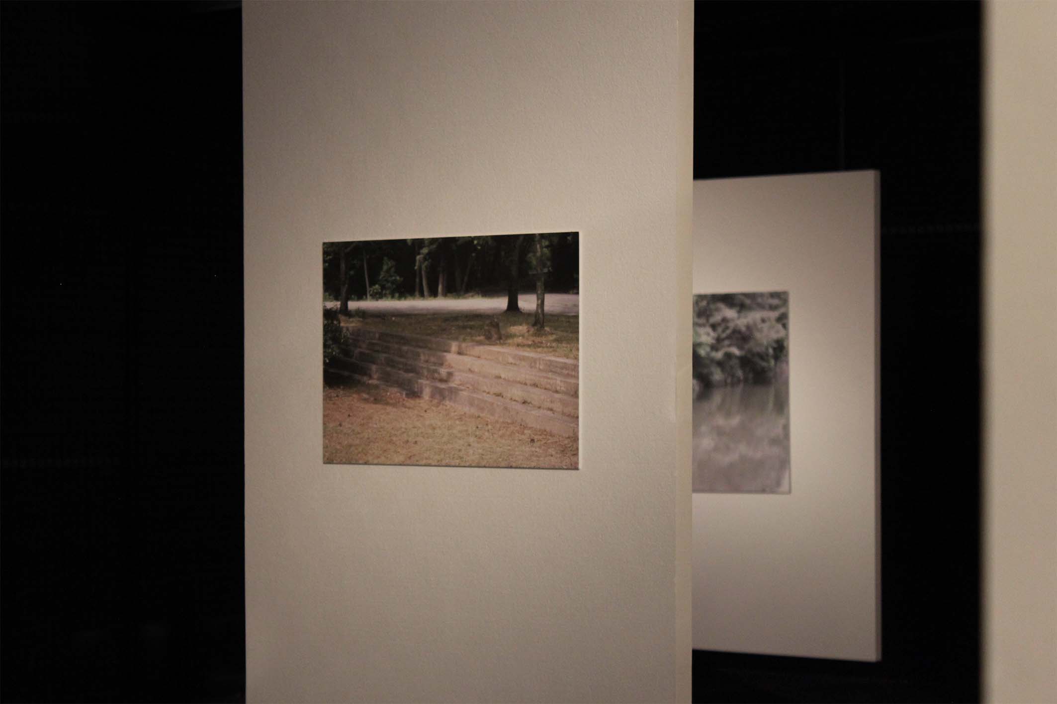 撮影された公園の写真は、まるで宙吊りの断片のようになりました。これらの写真は、場所や事物から引き剥がされたものとして、「記憶」の当事者によって辛うじて繋がれている痕跡のような存在です。このように現れるものと消えるものが行き来する過程、あるいはその繰り返しは、決して反復できない時間や記憶を逆説的に体現しているのではないでしょうか。